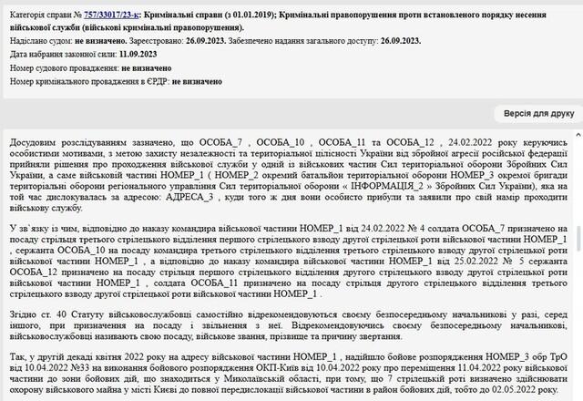 Розслідування цих поки що де-юре недоведених злочинів відбувалося в рамках кримінального провадження №42023113330000001 від 21 березня 2023 року, яке було відкрито територіальним управління ДБР у Києві. Слідчі встановили, що солдати вищезгаданої військової частини, троє з яких мають статус столичних депутатів, а ще один – помічник депутата Київради, впродовж року не з’являлись на військову службу, проте отримували грошове забезпечення. За наявними даними, у своїй військовій частині вони начебто займали посади командира, стрільців та водія двох стрілецьких рот. При цьому, як повідомили в ДБР, керівник апарату Київради сприяв оформленню липового «відрядження» трьом депутатам та одному з їх помічників до КМВА. Також до цієї оборудки був залучений і командир цієї військової частини, де вказані особи мали проходити службу за мобілізацією.