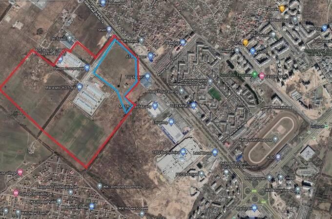 Ділянки на карті (цей масив обведено блакитною лінією, інформація із соцмереж)