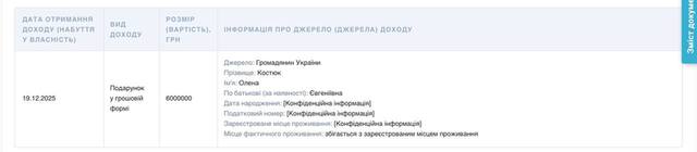 Торік народний депутат Дмитро Костюк отримав від «Святого Миколая» подарунок на суму 6 млн грн. Втім, «Миколаєм» виявилася його мати, яка зробила щедрий подарунок під ялинку.