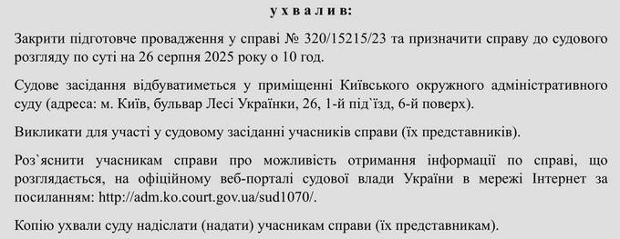 Київський окружний адміністративний суд призначив на 10:00 26 серпня 2025 року розгляд позову колишнього заступника голови Державної митної служби Руслана Черкаського.