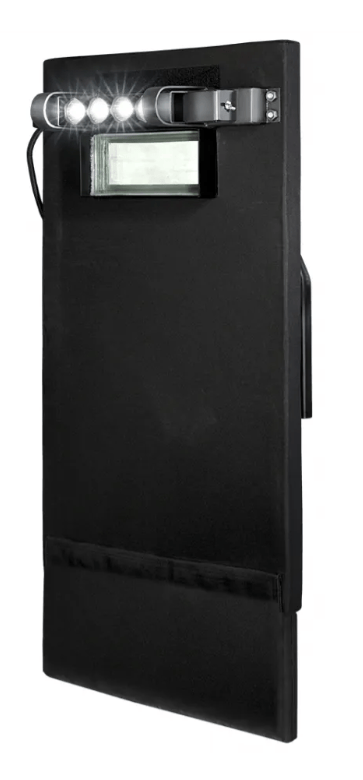 Плаский щит габаритами 900х500 мм і вагою не більше 30,5 кг має основну захисну панель 6 класу захисту в зоні керамічного покриття і захисний фартух для ніг 2 класу захисту площею 15 кв. дм. Робоча частина щита виготовлена із композитної керамічної броні, яка розміщена на надвисокомолекулярному поліетилені. Загальна площа захисту складає 43 кв. дм, а площа захисту по 6 класу – 31 кв. дм. Щит комплектується оглядовим вікном 3 класу захисту площею 5 кв. дм, системою розвантаження, системою приєднання до системи розвантаження, чотирма ліхтарями зі стробоскопічним ефектом по центру основної захисної панелі нижче оглядового вікна та індивідуальним чохлом із високоміцної чорної тканини.