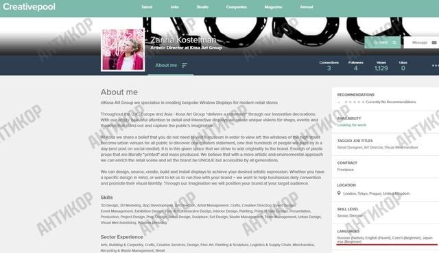 Офіційною електронною поштою фірми вказаний е-мейл з російським доменом mail.ru. Точно таку ж адресу Заріна Костельман вказувала під деякими своїми артроботами.