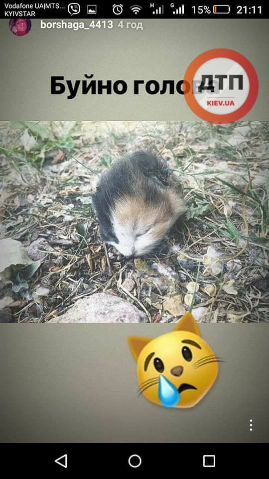 “Внимание розыск!!! Знакомьтесь: проживающий в районе школы 13, малолетний утырок Ваня (там же и тусует). Убивает животных, скидывает фото в инсту”, – сообщается в Facebook dtp.kiev.ua.